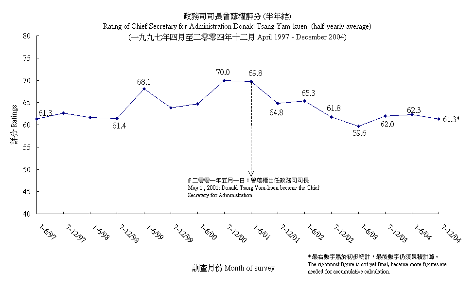 Rating of Chief Secretary for Administration Donald Tsang Yam-kuen (half-yearly average)