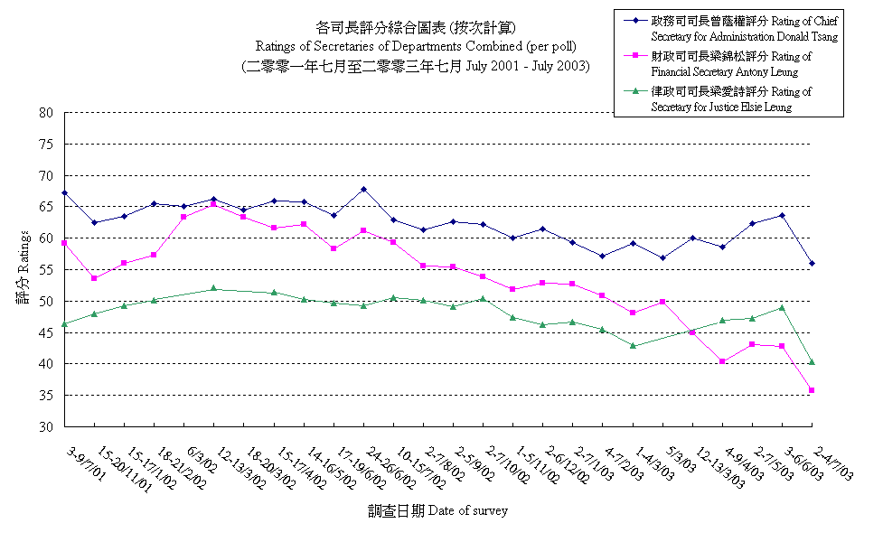 Ratings of Secretaries of Departments - combined charts (per poll)