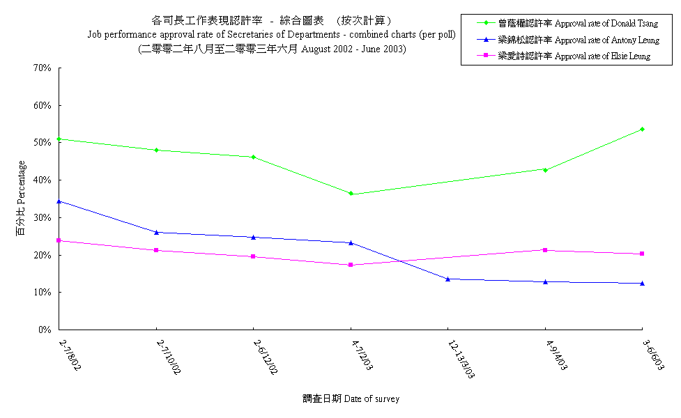 Job performance approval rate of Secretaries of Departments - combined charts (per poll)