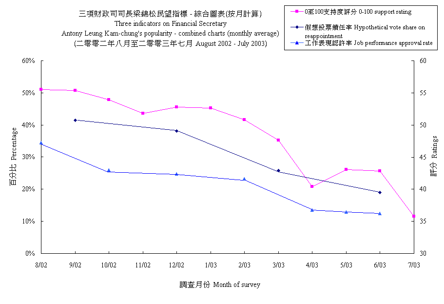 Three indicators on Financial Secretary Antony Leung Kam-chung's popularity - combined charts (monthly average)
