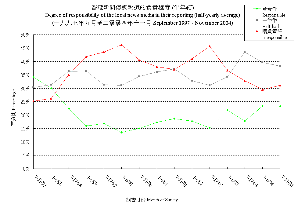 Degree of responsibility of the local news media in their reporting (half-yearly average)