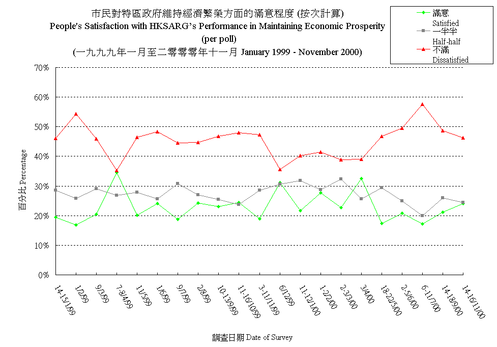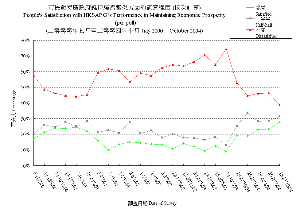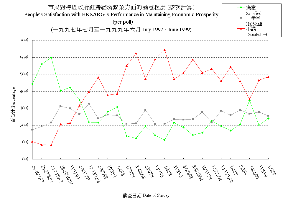 市民對特區政府維持經濟繁榮方面的滿意程度 (按次計算) People's Satisfaction with HKSARG's Performance in Maintaining Economic Prosperity (per poll) |